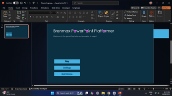 A 2D Platformer game made in PowerPoint. This was coded in VBA code and is pretty fast! For a presentation at least... Jump around with keyboard input!